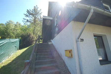 Objektbeschreibung Das hier angebotene Haus wurde im Jahr 1979 errichtet und verfügt auf einer Fläche von ca. 160qm über 3 Schlafzimmer, einen großen, offenen Wohn-/Essbereich, die Galerie und eine große Sporthalle. Erdgeschoss und Obergeschoss verfügen jeweils über einen eigenen Zugang. Im Erdgeschoss stehen ein Flur, zwei Schlafzimmer, zwei Bäder und ein Abstellraum zur Verfügung. Im Obergeschoss befinden sich der offene Wohn-/Essbereich mit offenem Zugang zur Küche, ein Gäste-WC, der Flur und die Sporthalle mit einer Größe von ca. 46qm zur Verfügung. Über eine Wendeltreppe ist die Galerie mit seperater Toilette zu erreichen. Ebenfalls führt eine Wendeltreppe vom Obergeschoss ins Erdgeschoss. Das Haus verfügt über eine neuwertige Brennwertheizung von Buderus. Das Obergeschoss verfügt über Fußbodenheizung. Alle übrigen Räume sind mit Heizkörpern ausgestattet. Vom Wohnbereich haben Sie Zugang zur großen Sporthalle, die zurzeit mit Tischtennisplatte, Kicker und Sauna ausgestattet ist. Von hier aus haben Sie Zugang zum großen Hanggrundstück. An der Straßenseite verfügt das Haus über einen Stellplatz und eine Garage. Die großen Fensterelemente der Sporthalle wurden im vergangenen Jahr erneuert. Das Haus wurde in den vergangenen Jahren als Ferienhaus vermietet, das Platz für 8 Personen bietet.