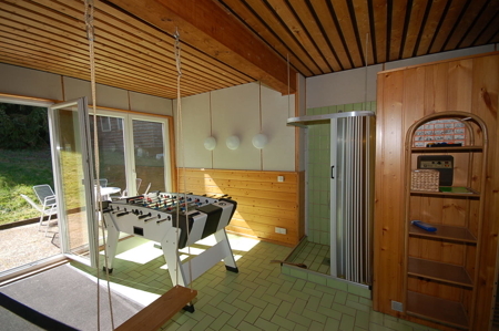- Sporthalle mit Tischtennisplatte, Kicker, Sauna und Dusche