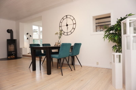 Die Beheizung des Hauses erfolgt über moderne und energiesparende Infrarotheizkörper. Als bivalentes Heizsystem steht ein hochwertiger Kaminofen im Wohnzimmer zur Verfügung.