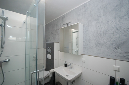 - neues Badezimmer mit Wanne und Dusche mit Echtglaskabine