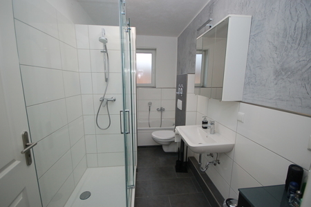 - neues Badezimmer mit Wanne und Dusche mit Echtglaskabine