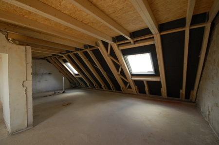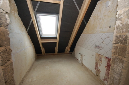 Die beiden Wohnungen im Dachgeschoss werden zurzeit neu erstellt. Der Spitzboden wird der größeren der beiden Wohnungen zu großen Teilen als Abstellfläche zugeordnet.
